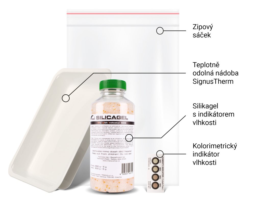Umístěte filament do zipového sáčku spolu se silikagelem v nádobě SignusTherm.